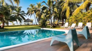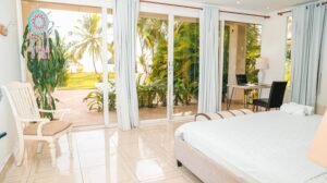 Ubicada frente al mar en Playa Las Lajas, Casa Carey es una opción ideal para grupos grandes que buscan comodidad y privacidad frente a la playa. Esta espaciosa casa vacacional cuenta con capacidad para 12 personas, distribuidas en 5 habitaciones y 5 baños. Rodeada de palmeras y con vista directa al océano, ofrece un entorno relajado perfecto para descansar o celebrar en familia o con amigos.
